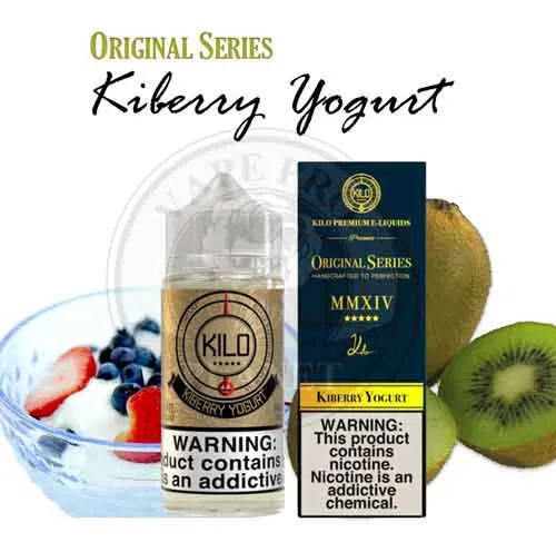Kiberry Yogurt By Kilo Original Series. If you enjoy creamy yogurt that has a nice fruity twist of fresh strawberries and tropical kiwi. Then Kilo Premium EliquidsKiberry Yogurt 100ml is a must-have to add to your collection. When you can take two fruits that complement each other so well and blend them with silky smooth yogurt, anything is vaping possible. Therefore, you must try. Besides, you should stock.