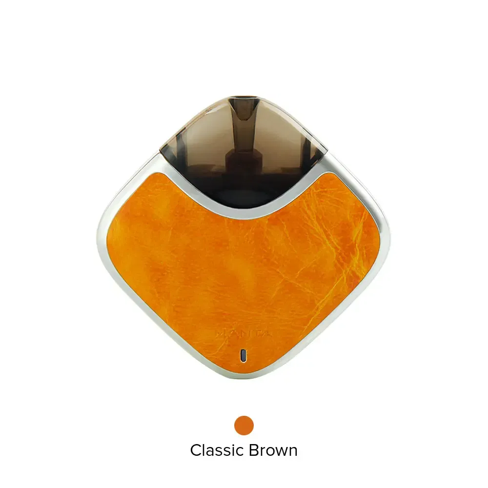 Perkey Manta Pod System Kit is a portable pod vape kit that is powered by 450mAh built-in battery and can hold 1.0ml e-liquid. The leather finished makes it comfortable to hold in hand. Enjoy the pure flavor and wonderful vaping experience.