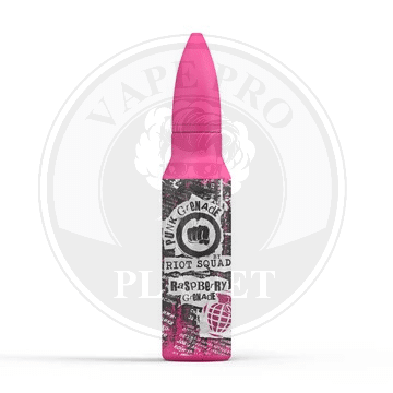 RASPBERRY GRENADE Riot Squad. Prepare to get in a fizz as this weapon is charged up with raspberry and explosive lemonade. Batten down the hatches – Raspberry Grenade, incoming! This scrumptious sub ohm blend is sure to make its way to the frontline of your e-liquid collection as a firm favorite with its notes of tart raspberry and subtle, refreshing lemonade.