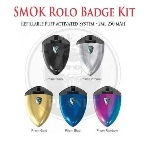 SMOK Rolo Badge Pod System. Ultra Portable System Kit is the All-In-One Starter Kit that made of Zinc Alloy and PC material. With the shaped like a brilliant emblem, it is the pocket vape kit anywhere. Therefore, you must try. Besides, you should buy.