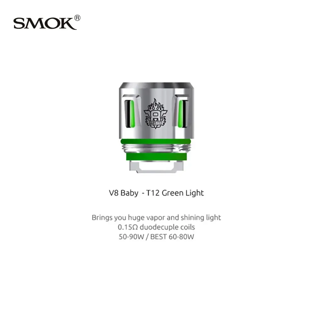 SMOK V8 Baby Core includes the V8 Baby-Q4, V8 Baby-T12, V8 Baby-T12 Red Light, V8 Baby-T12 Green Light, V8 Baby-T12 Orange Light. It is designed for the TFV12 Baby Prince and the SMOK TFV8 Baby.