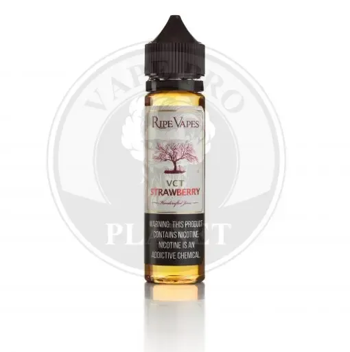 VCT. Strawberry vape Ejuice from Ripe Vapes comes in a 60ml unicorn bottle with an ideal cloud and flavor chasing ratio of 75/25 VG/PG.