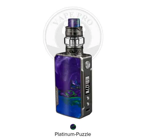 Voopoo Drag 2 Platinum Kit. Drag 2 Platinum consists of a Drag 2 Platinum TC Box mod and a Uforce T2 tank. Adopted new appearance design and craftwork process, The Drag 2 kit will give you unique ever vaping experience. Ergonomic design with curve surface and rounded corners offer you a great grip feeling. Powered by dual 18650 batteries, the maximum output can reach up to 177W. Moreover, Equipped with GENE.CHIP inside to give you a safe vaping experience. Innovative FIT mode intelligently matches and protects tanks from burnout.